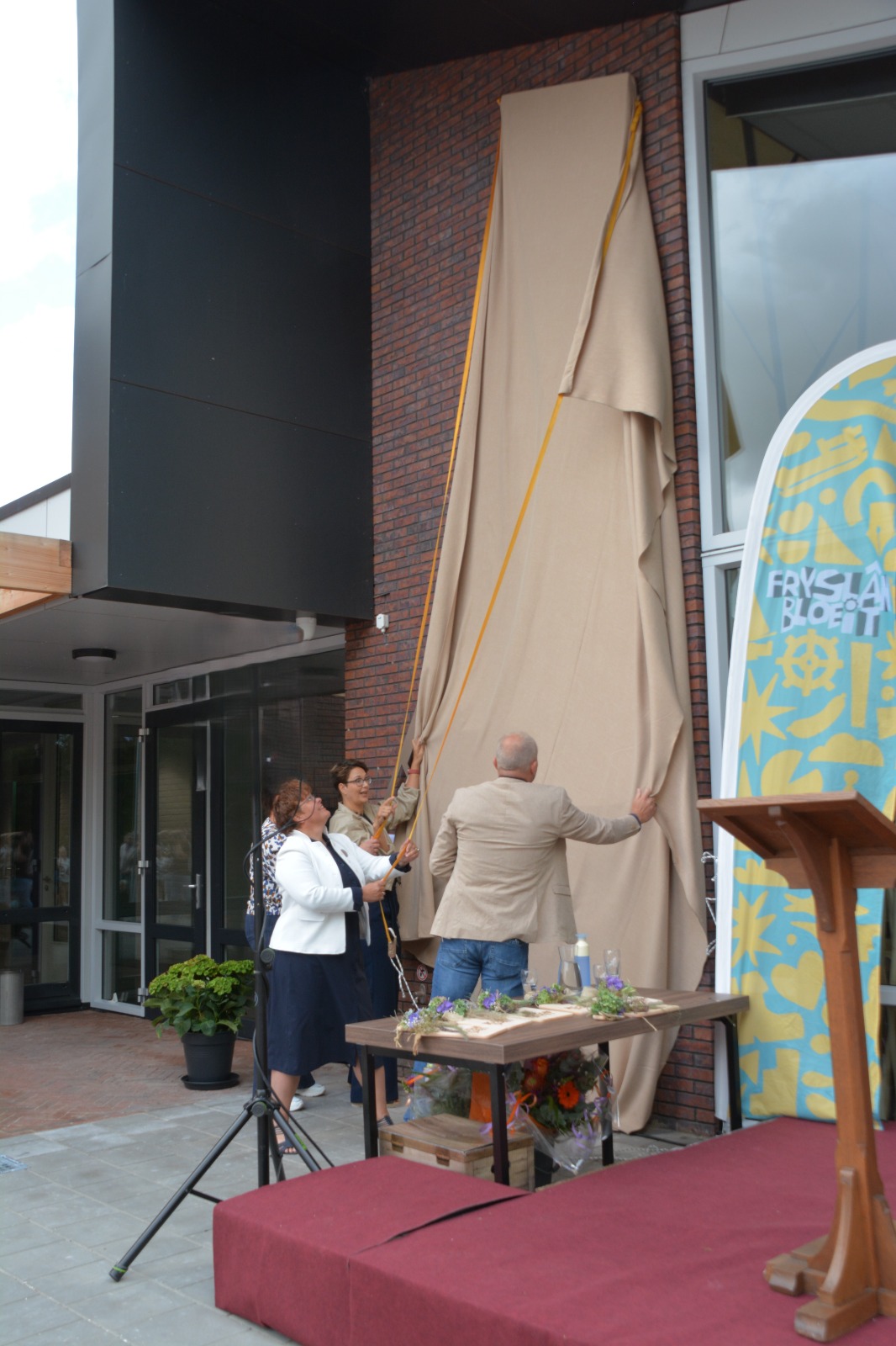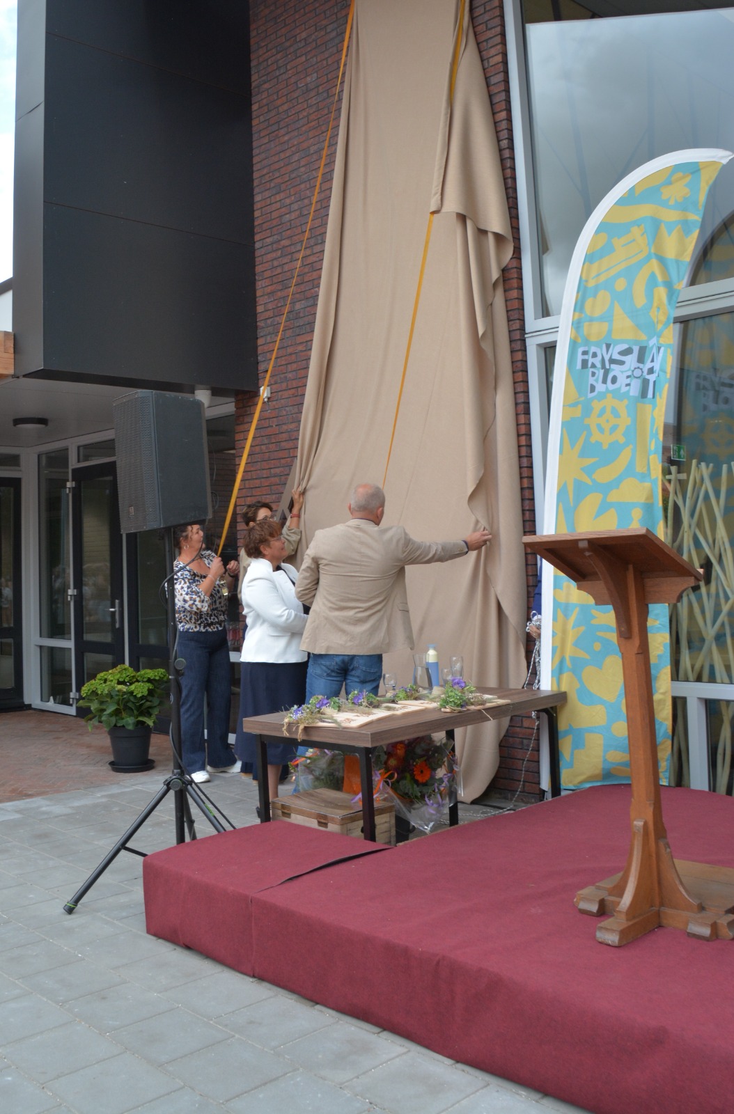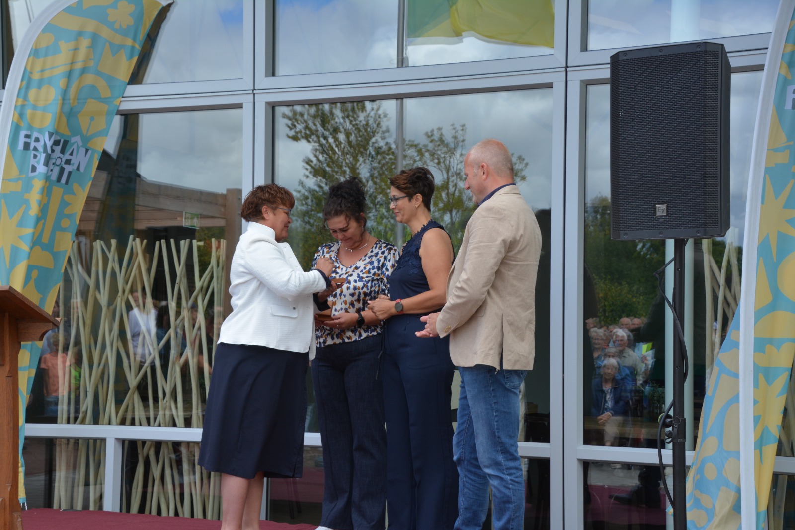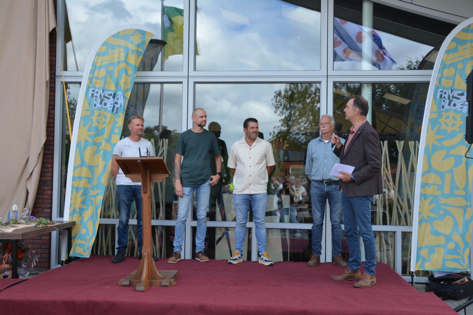 Sneon 23 augustus is it MFA yn Jistrum dan echt iepene! Mei likernôch 600 ynwenners en oare belangstellenden hawwe wy een toast útbrocht op it MFA. De namme is ûntbleate, de tiidcapsule is delset en de ynisiatiefnemers Gerrie, Djoke en Renee hawwe fan wethâlder Willemsa in kadootsje krigen. Op it poadium wiene optreden fan Melle Leegstra en streetdance Jistrum. Melle hie spesjaal foar de gelegenheid in liet makke oer it MFA. In moaie start fan de bloeiwike!