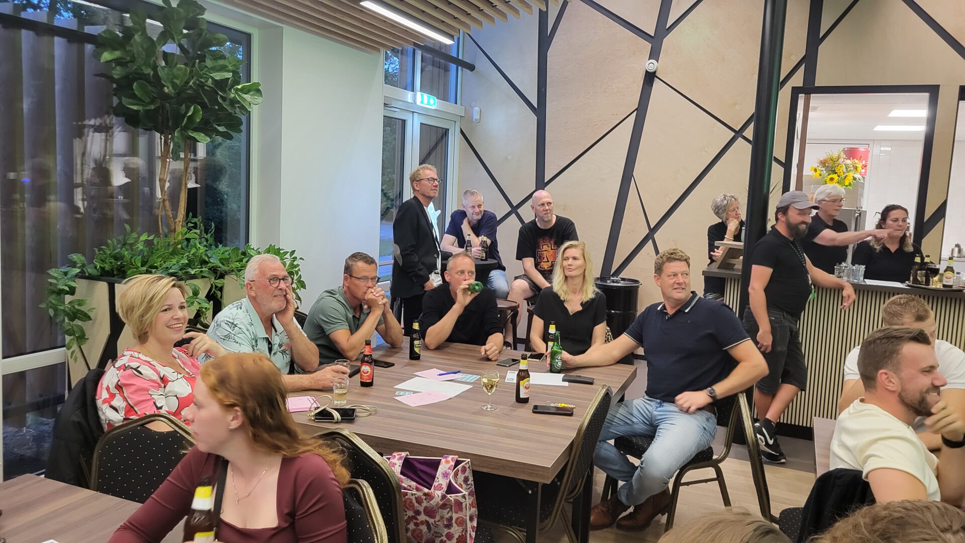 Freedtejûn wie dan de lêste aktiviteit tiidens de bloeiwike. En wat foar aktiviteit! Dorpsbelang traktearre it dorp op een spannende pubquiz. 22 teams, oh nee 23 teams gongen de striid mei elkoar oan. Omdat een mobile telefoan ferbean wienen hat jim razende reporter mard enkele foto’s om op disse webside op te nimmen. Troch de gesellige sfeer nei de pubquiz hat disse redaksje ek de priisútrikking mist….. De koelkast moest wer oanfult wurde. Hawwe jim noch foto’s?  Stjoer se nei us op! Tige Tank