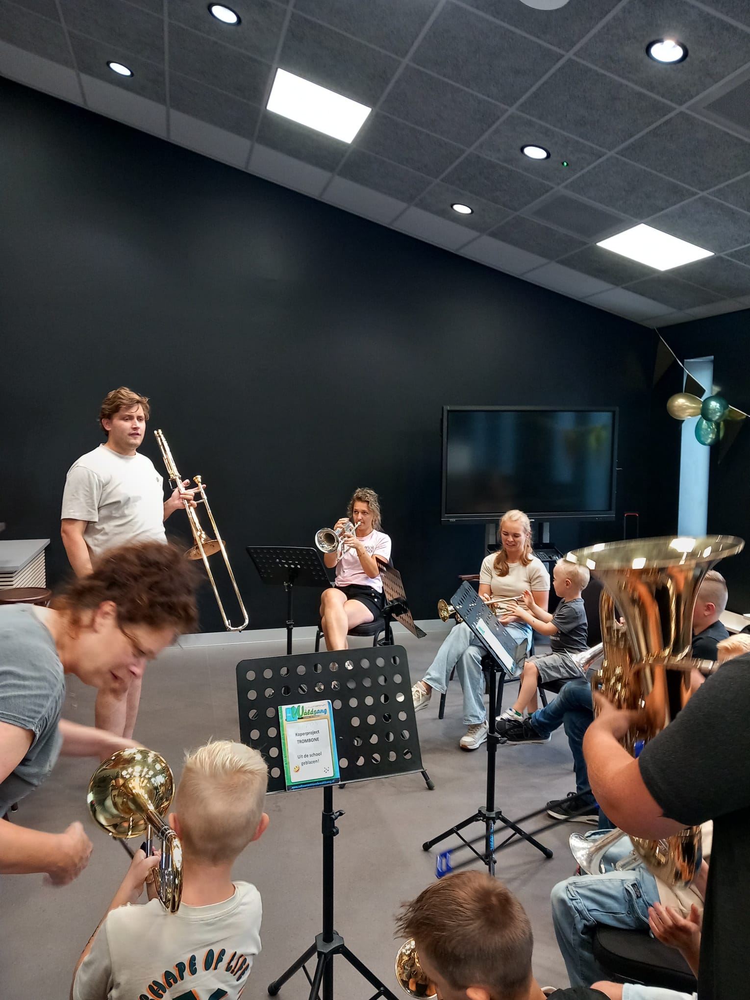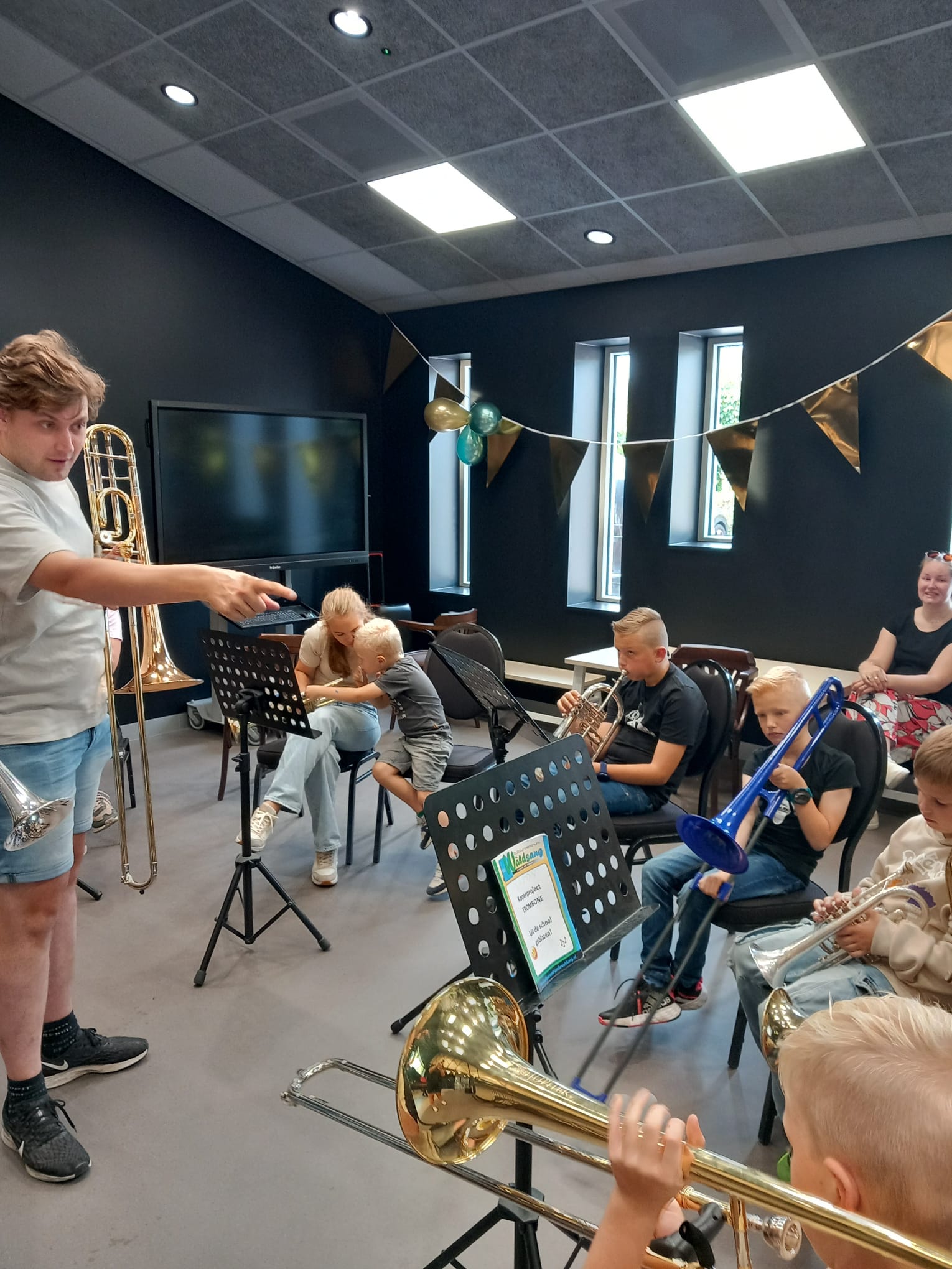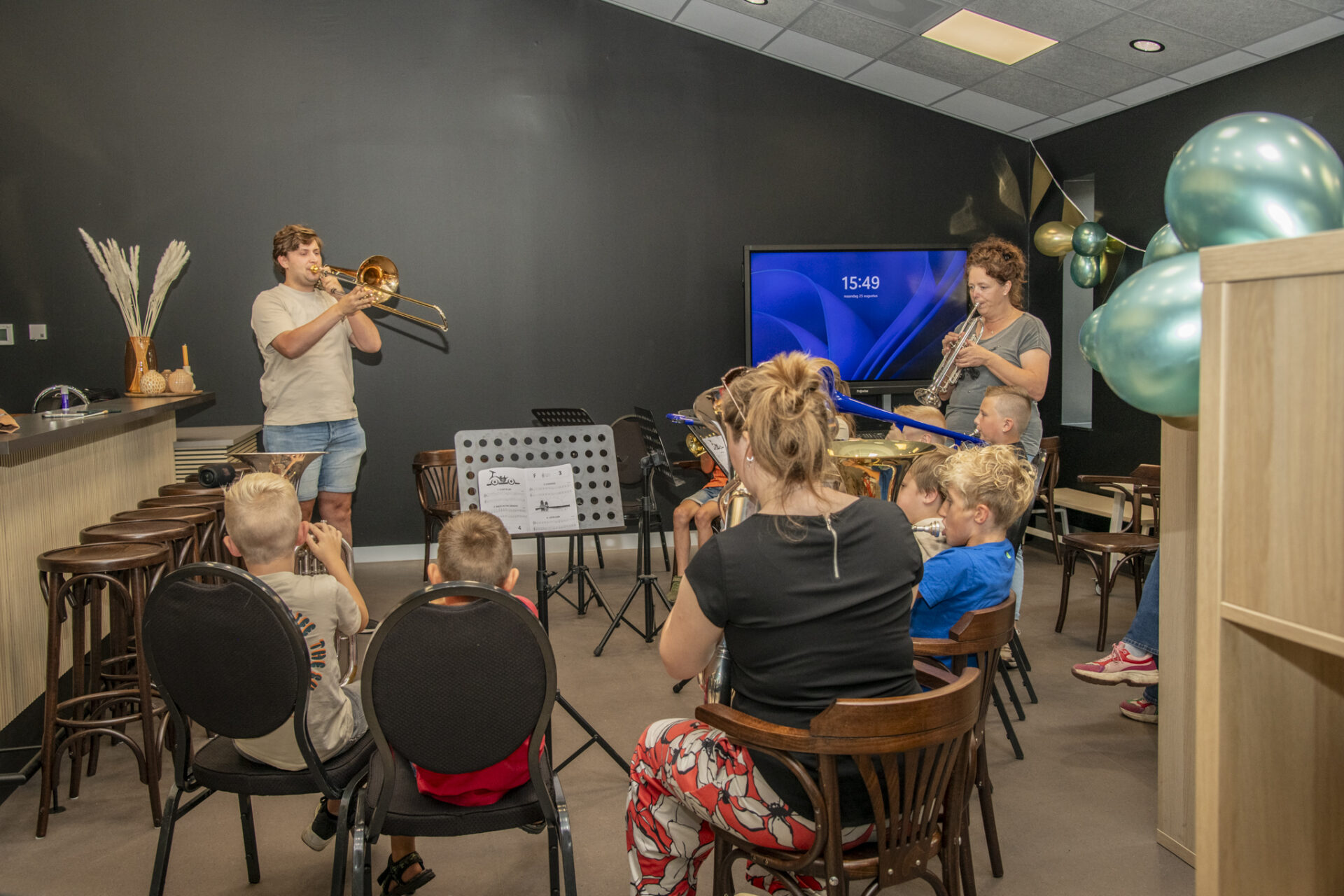 De bern ha een protte wille hân by hun soms earste erfaring mei een instrimunt. De begelieders die self yn it a korps fan joast Wiersma spylje makken der een muzikale middei fan.