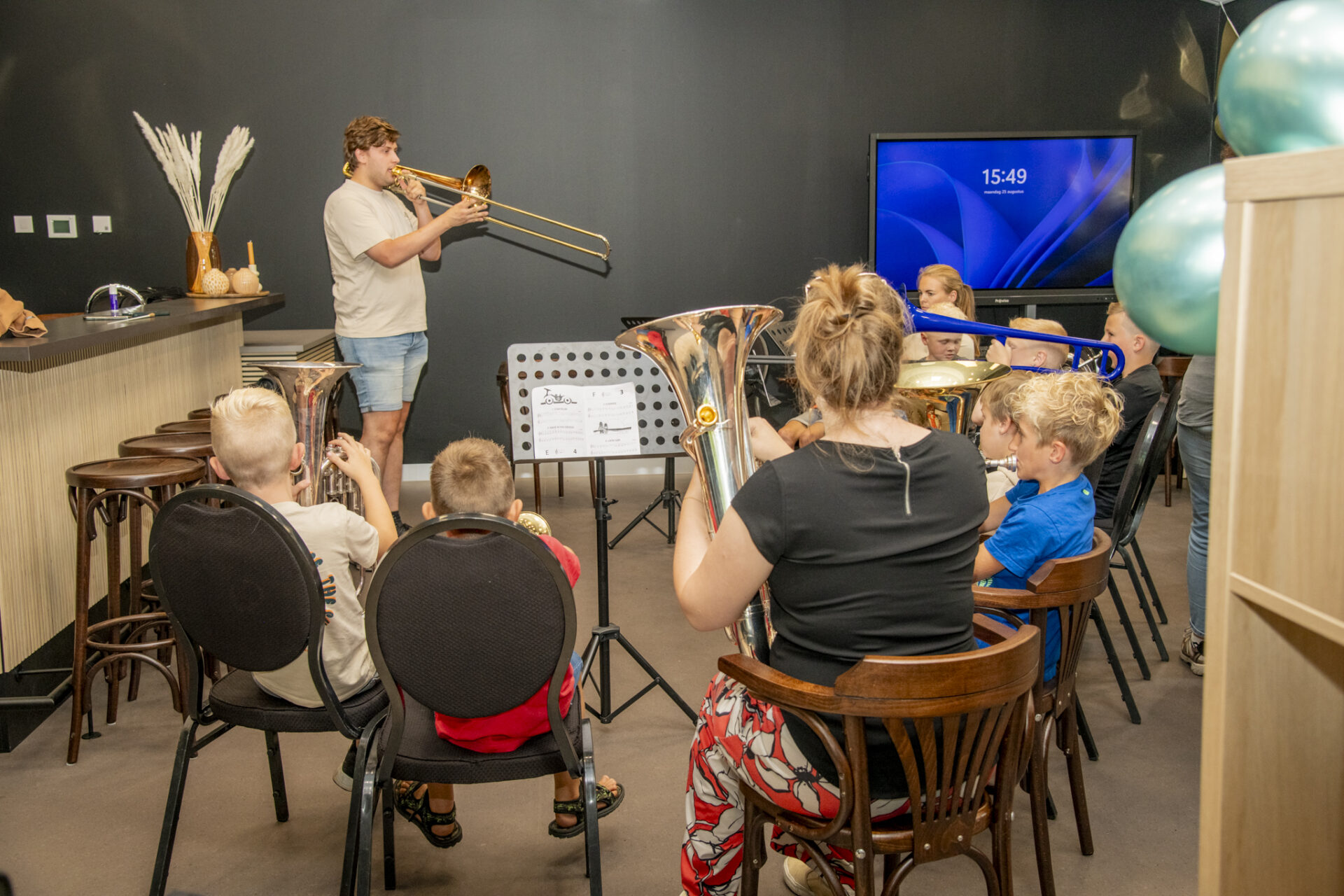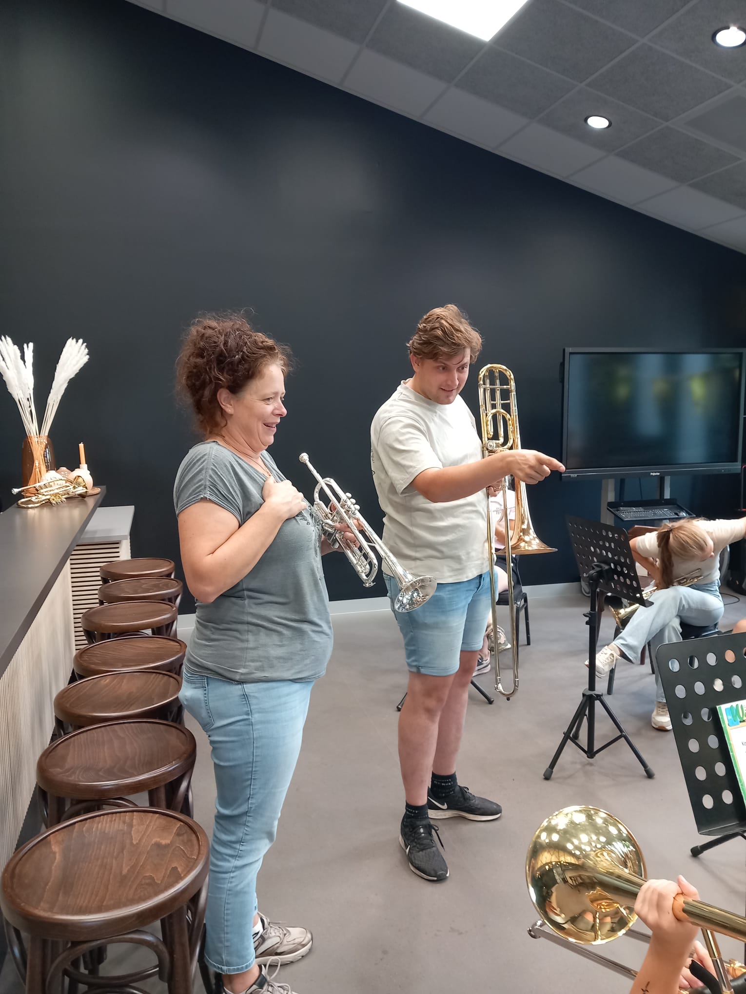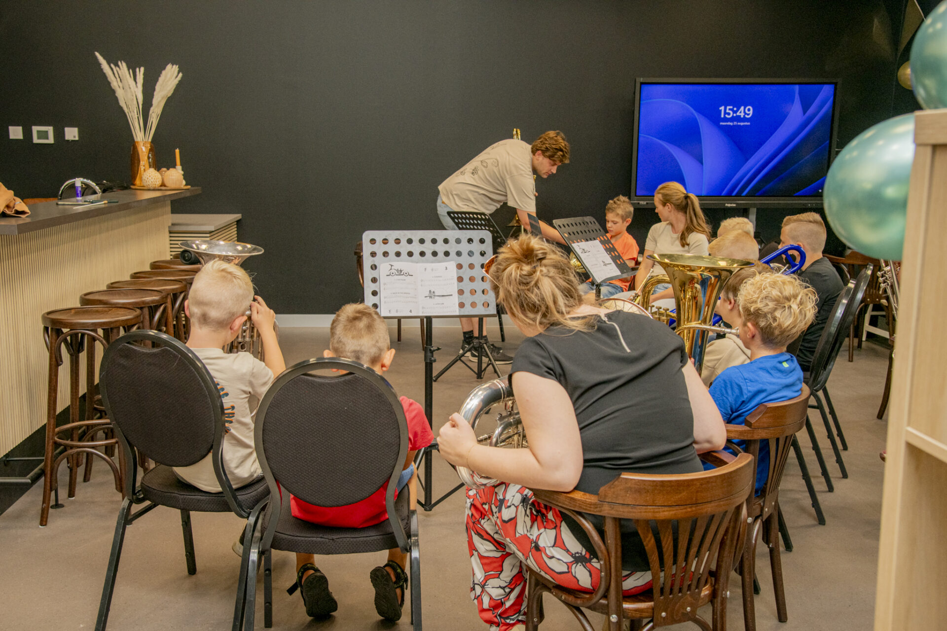 De bern ha een protte wille hân by hun soms earste erfaring mei een instrimunt. De begelieders die self yn it a korps fan joast Wiersma spylje makken der een muzikale middei fan.